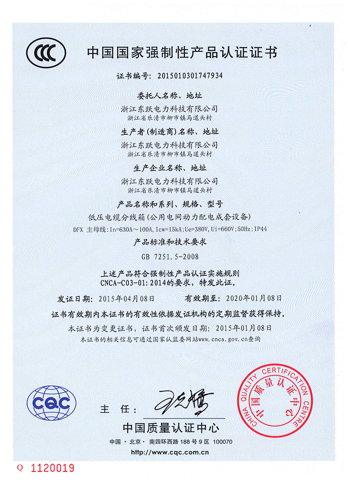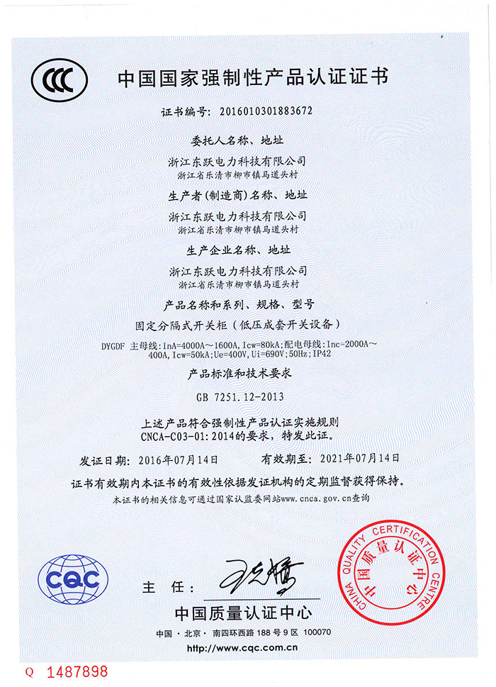 企業(yè)榮譽(yù)3C-固定分隔式開(kāi)關(guān)柜