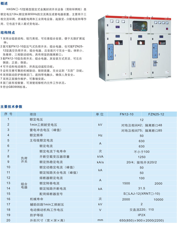 HXGN-12箱型固定式金屬封閉開關(guān)設(shè)備