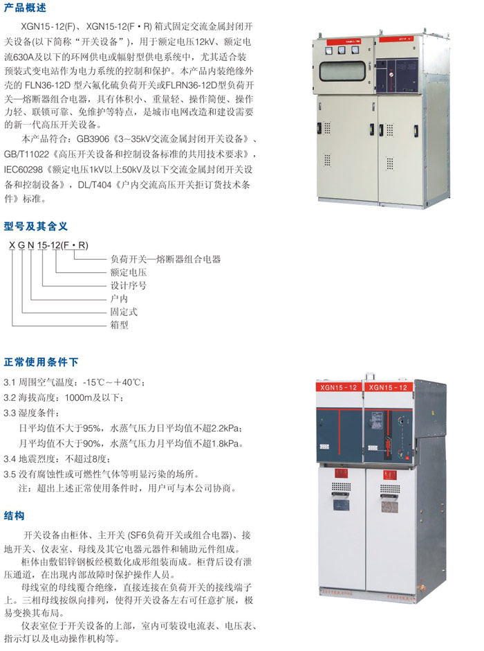XGN15-12(F)箱式固定交流金屬封閉開關(guān)設(shè)備